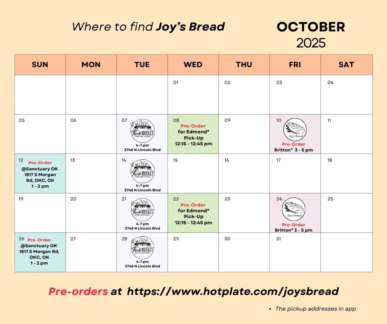 Click our calendar to find a pick-up location's menu to order your bread today!